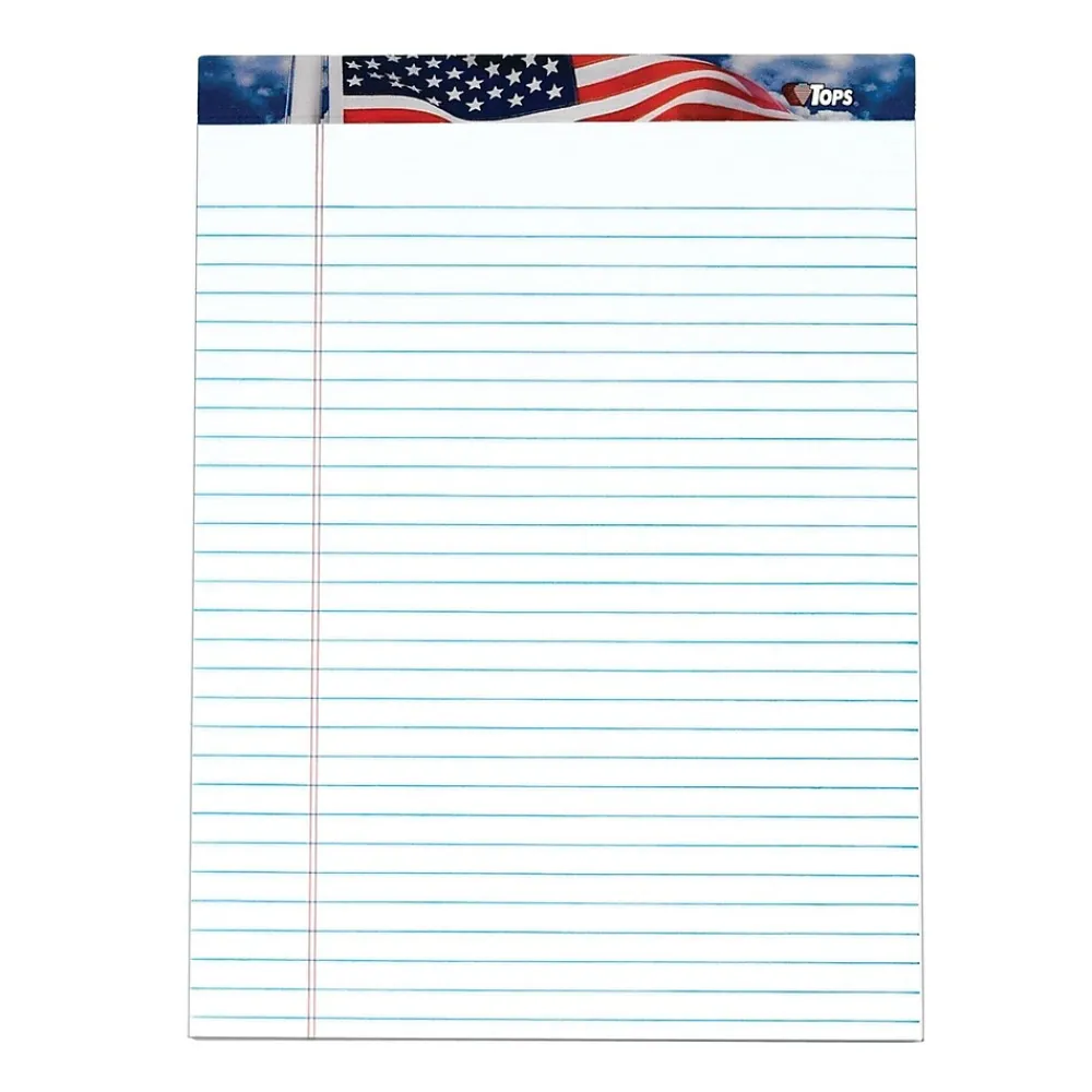 Pay homage to the Stars and Stripes with these TOPS American Pride writing tablets. The letter-size sheets make these notepads ideal for use in business meetings or depositions, while the legal-rule design helps you keep handwriting neat and legible. These TOPS American Pride writing tablets feature U.S. flag head strips, adding a hint of patriotic flair to your notes.