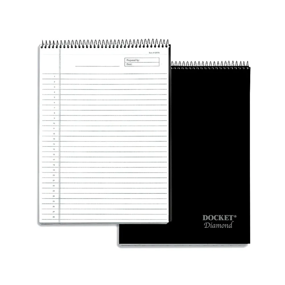 Bring a sophisticated look to meetings with this diamond premium stationery notepad, which features a black suede cover. The ruled pages feature line numbers to prioritize actionable items, and the perforated edges allow for clean sheet removal. Top wire bindings make it easy to flip through pages. This TOPS Docket stationery tablet features high-quality paper to withstand frequent handling.