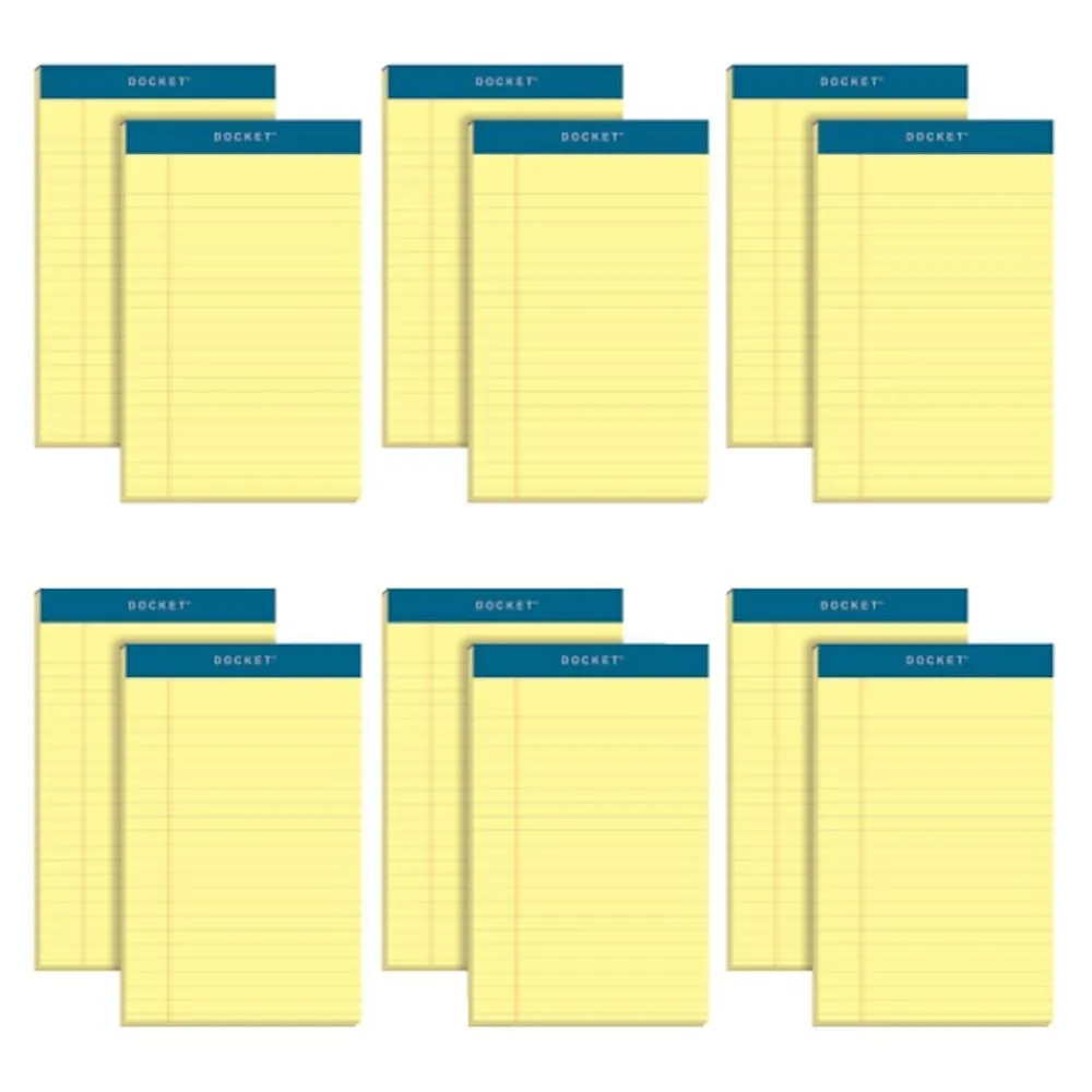 Take your notes on the go with these narrow-ruled notepads. Made with a durable chipboard back, these notepads provide sturdy support, so you can easily jot down thoughts, reminders, and to-dos as you go about your day to day tasks. These TOPS Docket rigid-back yellow notepads have 50 perforated sheets of paper, so you can quickly remove pages without causing damage.