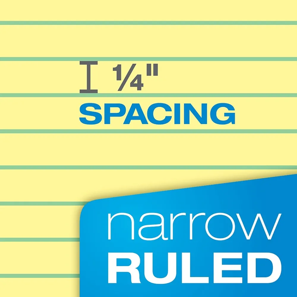 Bring a professional touch to meetings with these canary yellow legal notepads. The narrow-ruled format provides ample space for detailed notes, and the microperforated edges allow clean, rip-free sheet removal. Each notepad features an extra-strong backing, so you can write comfortably even without a desk or table. These TOPS Docket notepads feature canary yellow pages, which help ink and marker stand out for readability.