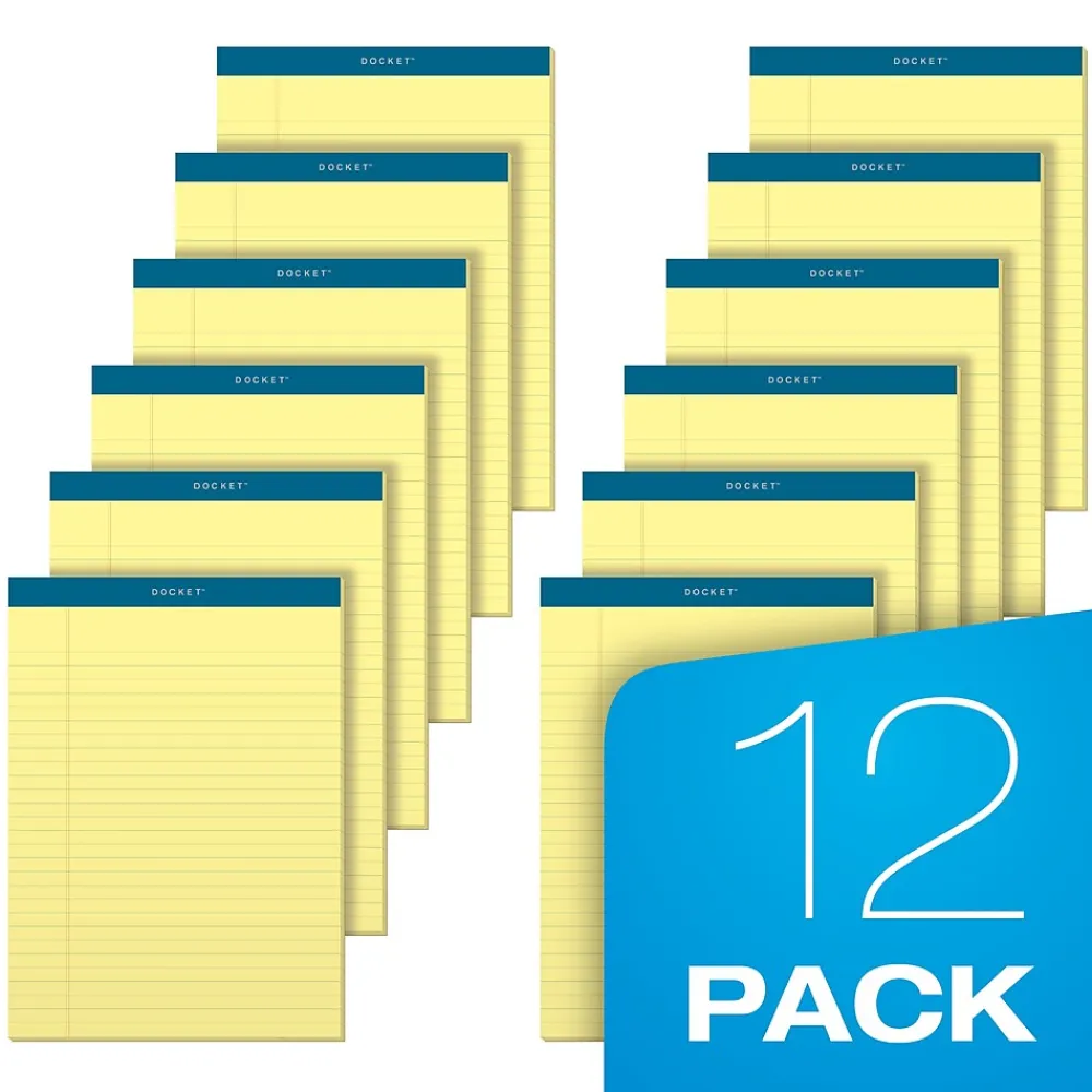 Gather your thoughts or compile notes with these TOPS Docket notepads. The canary-yellow color helps readability while the wide-ruled sheets keep your writing neatly aligned. Rigid backs mean you can use these notepads while seated at your desk or standing in the courtroom. These TOPS Docket notepads feature micro-perforated edges, allowing for clean, tear-free sheet removal.