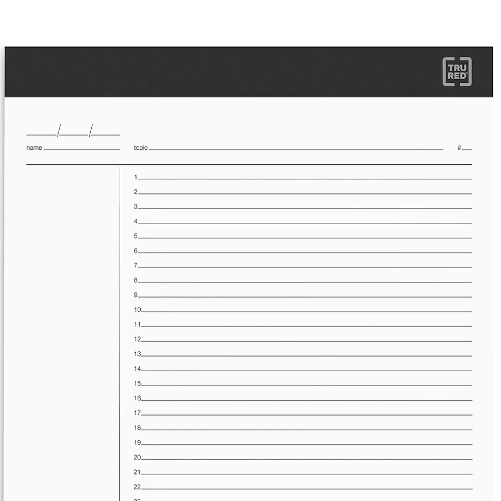 Write easily on the rigid surface of these heavyweight notepad. The top-bound construction lets you turn to a fresh page during note-taking, while the perforated design supports easy sharing. Featuring a project planning template, this notepad lets you capture important details for later review. These TRU RED™ 8.5 x 11.75-inch white heavyweight notepads has a 20-pound paperweight for a sturdy feel and durability.