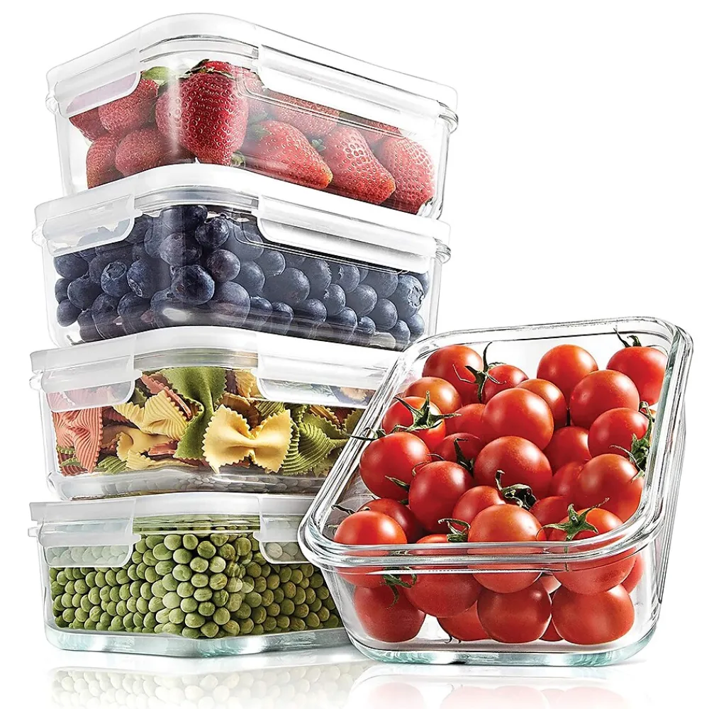 - Leakproof, borosilicate glass meal prep containers