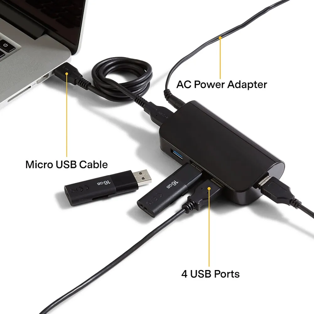 Plug this USB hub into your PC for fast transfer speeds of up to 5Gbps and rapid file copying. This NXT Technologies four-port black USB 3.0 hub comes with an AC adapter that supports fast charging of mobile devices.
