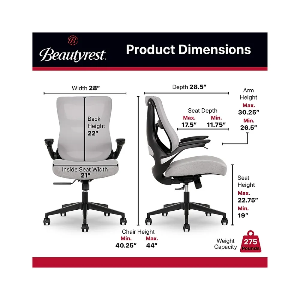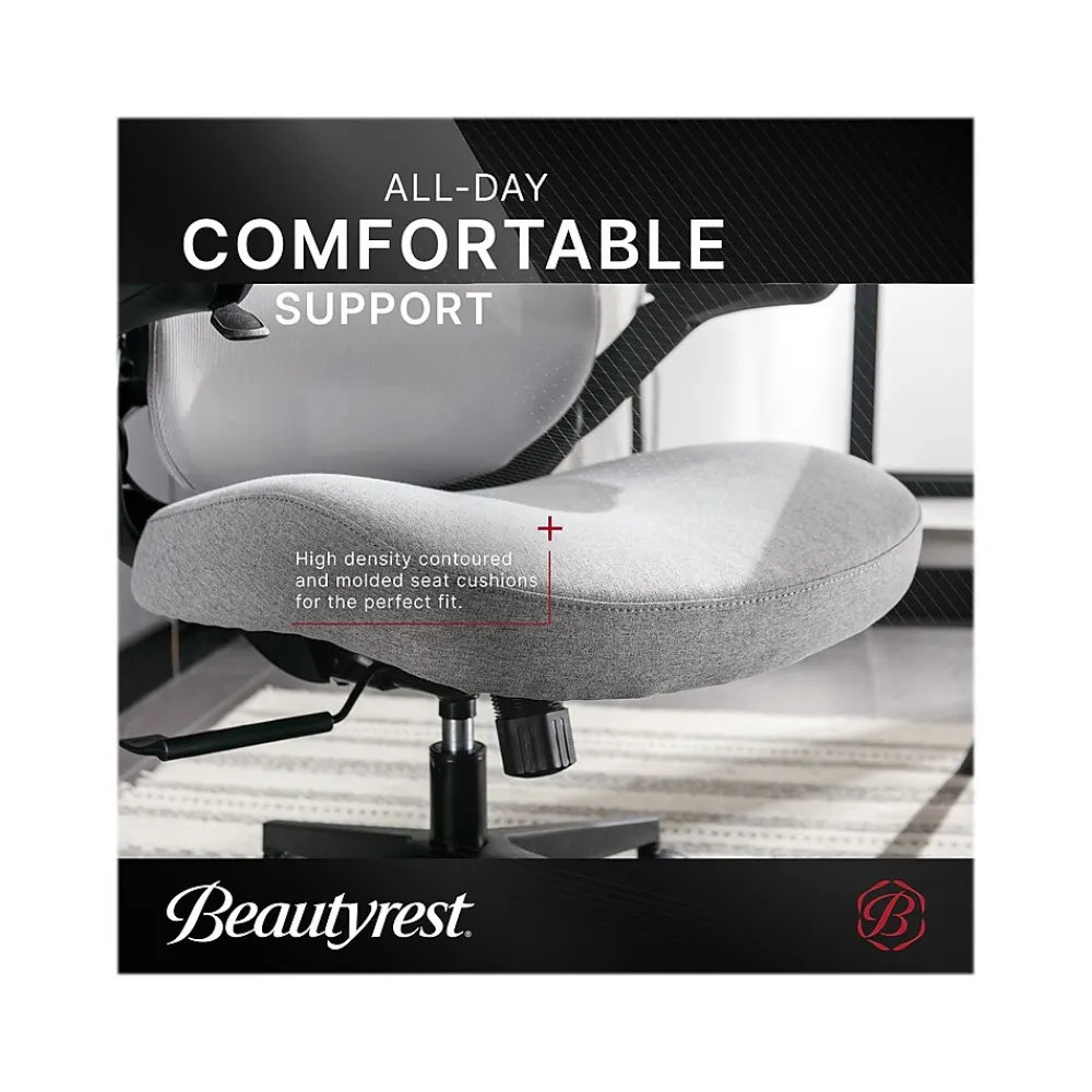 Enjoy the innovative comfort of the Beautyrest ErgoMax mesh office chair. With ergonomic design and exclusive technology, this revolutionary chair allows you to sit down in your morning meeting with ease. ErgoMax lumbar technology matches your seating position with the pull of a lever. Move forward and the ErgoMax seat back meets you at the edge of your seat so you can maintain alignment in your spine. Want to change positions? Lean back and ErgoMax falls into place and stays out of the way, without losing support. And it’s not just functional: the chair’s classic mesh back is made with superior craftsmanship, which means it’s sure to last, without compromising on sleekness and style. Get all the support you need with the Beautyrest ErgoMax mesh office chair.