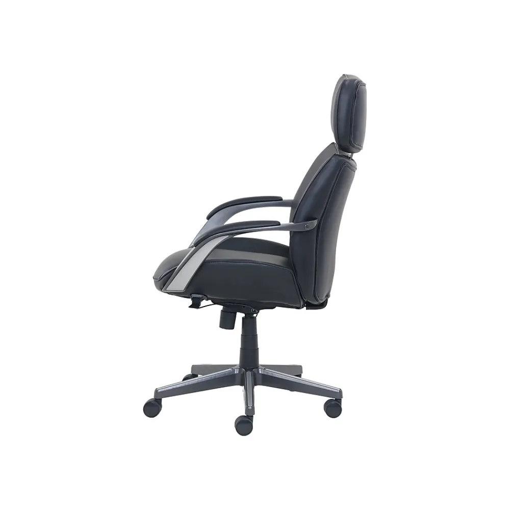 - Black with dark gray accents bonded leather upholstery is easy to maintain