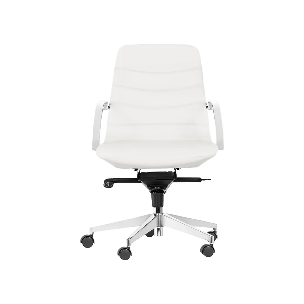 This Gry Mattr ergonomic office task chair with bungee lumbar support will make your work easier. The five-star base with casters adds mobility. White faux leather upholstery and steel armrests will complement any interior.