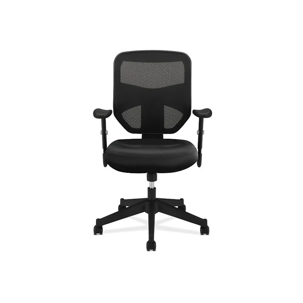 A waveform seat and height-adjustable padded arms give this chair an upscale feel at a compelling price. Seat upholstery is Black SofThread leather mesh. Back mesh, frame and base color is Black.