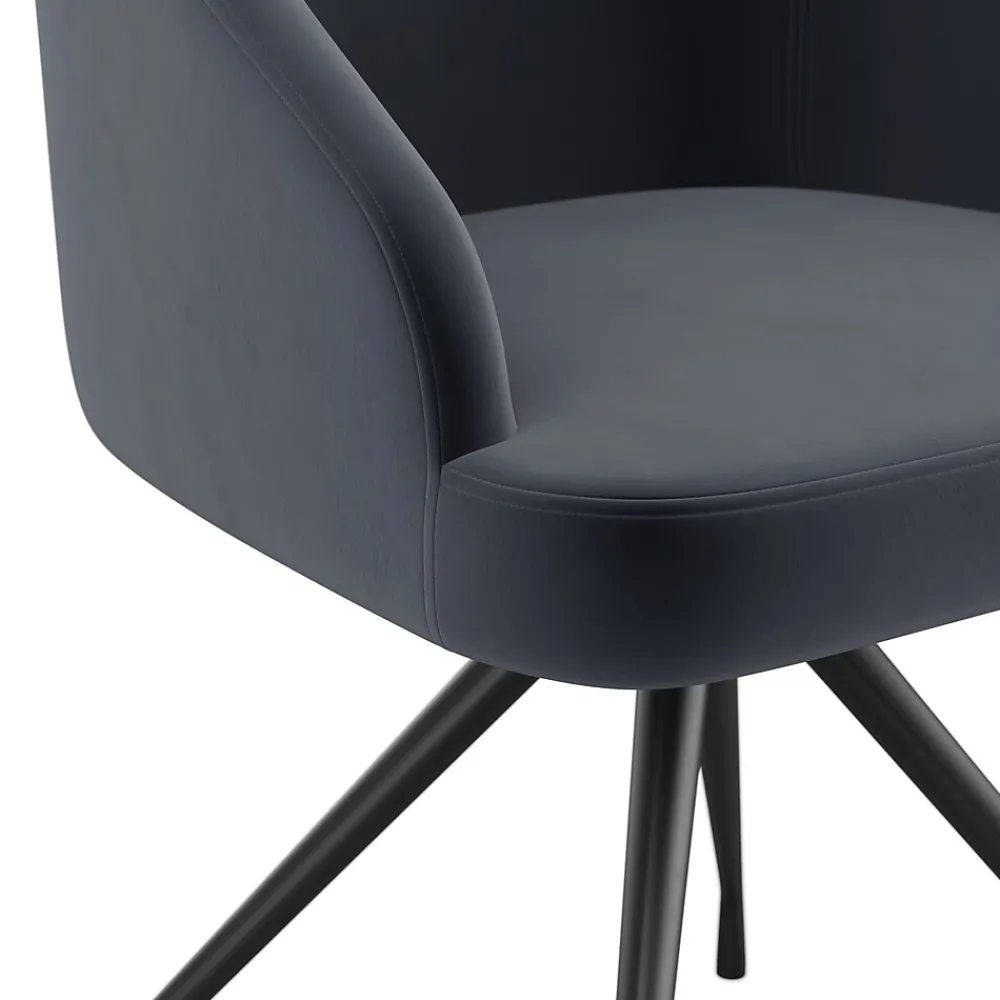 The Martha Stewart Sora Office Chair is a more sophisticated working version of the traditional accent chair. Stationary legs paired with a 360° swivel seat lend understated elegance to your work space. This velvet upholstered desk chair features a timeless oil rubbed bronze frame and a gently contoured backrest to keep you comfortable throughout your workday. Assembly is easy with the included tools and step-by-step instructions.