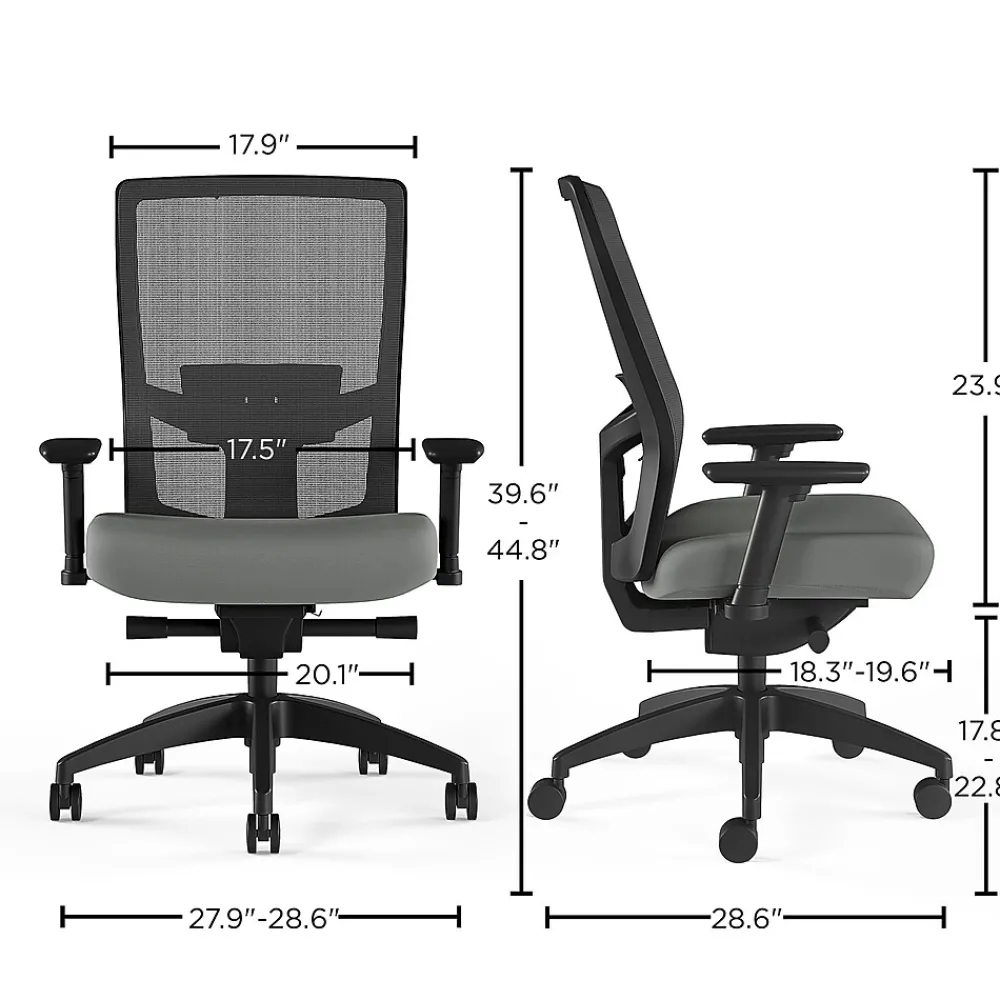 Introducing the Workplace2.0™ 500 Series Mesh and Fabric Task Chair – your gateway to elevated comfort and contemporary design in the workplace. Crafted with precision, this chair is engineered to redefine your sitting experience. Featuring an Iron Ore fabric contoured seat and width and height adjustable arms, it offers premium comfort tailored to your needs. The addition of Syncro-Tilt recline adjustments, seat slide, and adjustable lumbar support ensures optimal support and comfort throughout your workday. Built to withstand extended use, this chair is recommended for 8+ hours of continuous sitting, providing unparalleled durability and reliability. Plus, with a Limited Lifetime Warranty, you can trust in its lasting quality. Experience the perfect blend of quality and comfort with the Workplace2.0™ 500 Series Mesh and Fabric Task Chair – the ultimate solution for modern workspaces.