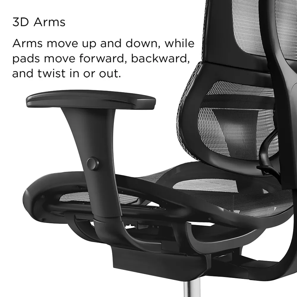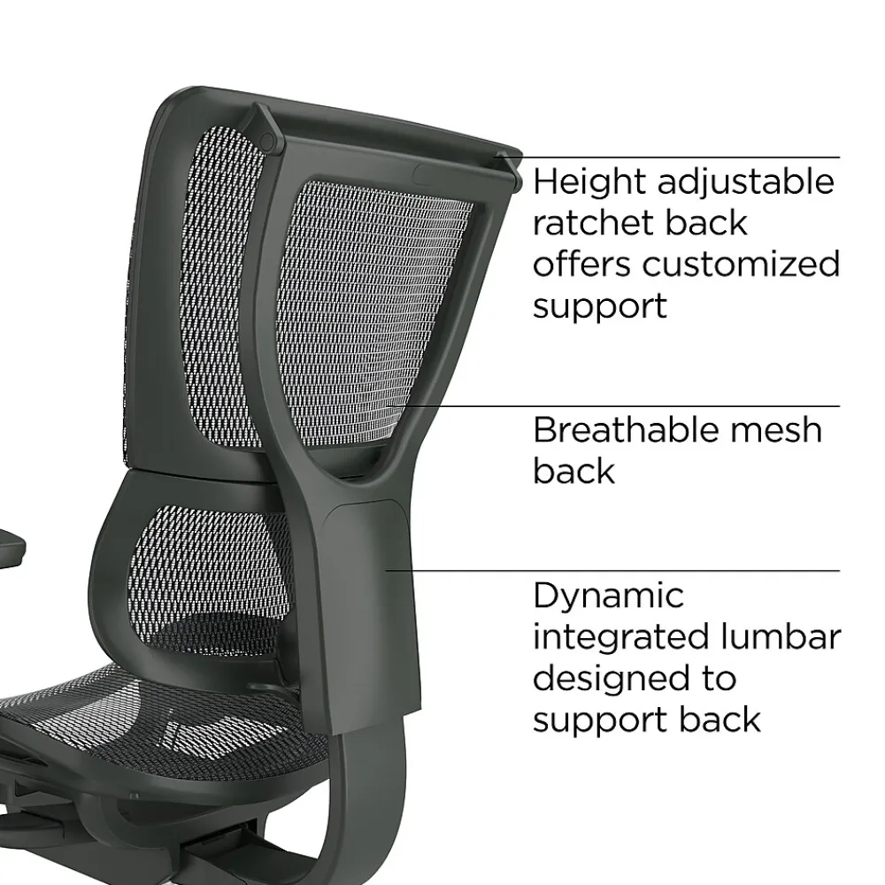 - Features mesh back and seat; comes in black