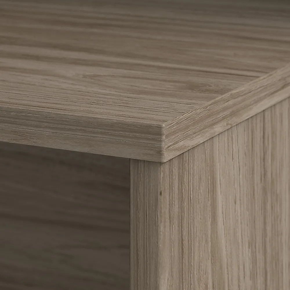 - Thermally fused laminate over composite wood in a modern hickory finish
