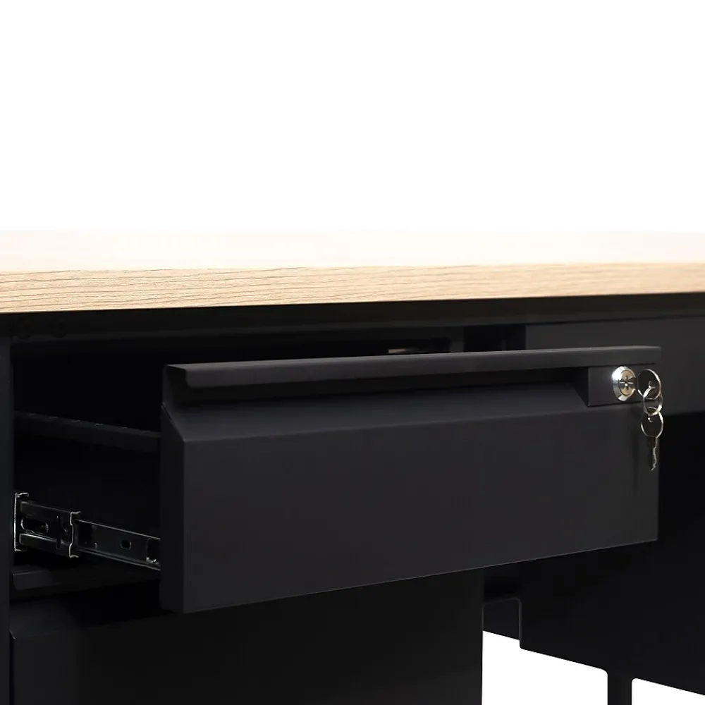 - Contemporary White Oak Laminate Desktop Finish with Black Steel Frame