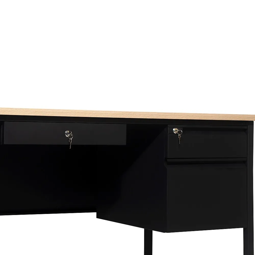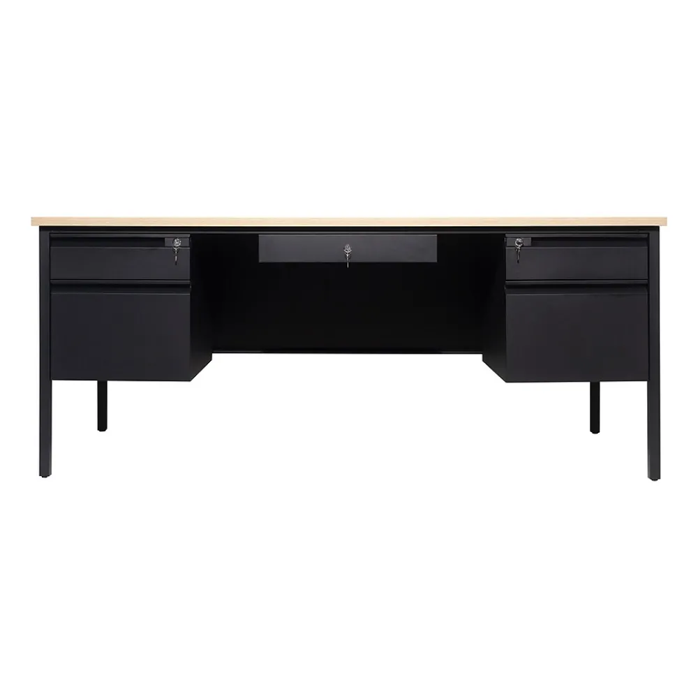 Office Desks*Flash Furniture Cambridge 70″W Double Pedestal Desk, (GCMBLK180WOK) White Oak/Black