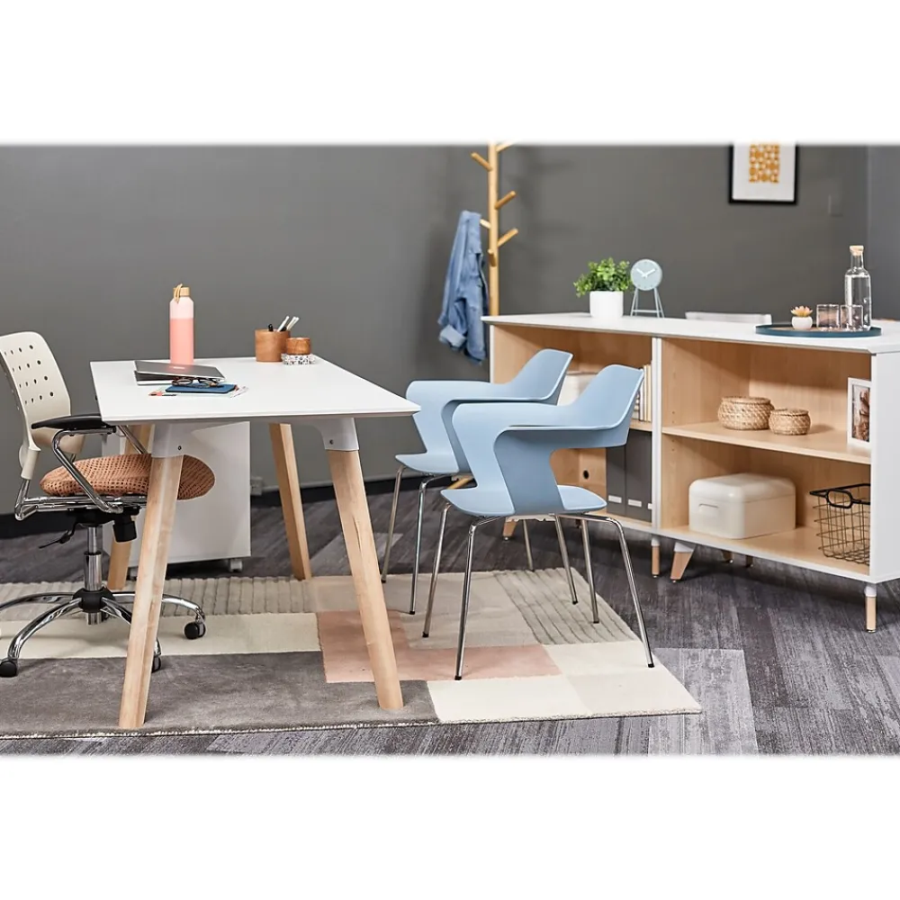Heighten your productivity with the modern Safco Resi desk and win every workday. Perfect for the office or WFH’ers, this versatile desk features a durable white laminate work surface with a knife edge to protect both your surroundings and forearms. The solid maple legs create a contemporary two-tone look that makes it easy to mix and match with other office essentials. Add coordinating mobile storage to neatly stash those high-profile project files.