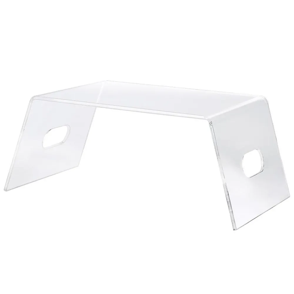 The AdirHome clear acrylic laptop and monitor stand is made to reduce eye and neck strain while accommodating a 21.5 in. wide laptop. This universal monitor stand is constructed of quality acrylic material with smooth edges and a beautiful clear platform to complement any desk or workstation. A keyboard can be stored under the AdirHome monitor stand to save desk space. Its portable mobile feature with cut-out hand holes on the sides, creates increased versatility to move your work space or leisure time wherever you need.