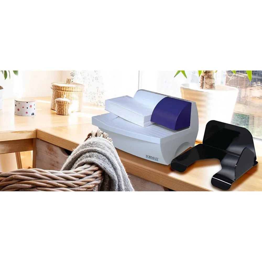 Maximize productivity and distribute incoming mail faster with the Formax FD 442 envelope opener. The opener has user-friendly features and is easy to set up. Simply load mail on the infeed, and that’s it. Within seconds, your mail is open and ready, thanks to the photo eye sensor which automatically starts and stops the feeder. The innovative cutting mechanism slits one side of the envelope from end to end, so the contents are left undamaged, with no messy paper scraps to clean up. It opens mixed mail up to 4mm thick, in sizes up to 10″ x 13″. Simply flip up the infeed extension to support large envelopes, and adjust the freestanding catch tray to stack them neatly. With a speed of up to 200 envelopes per minute, your mail will be ready in no time.