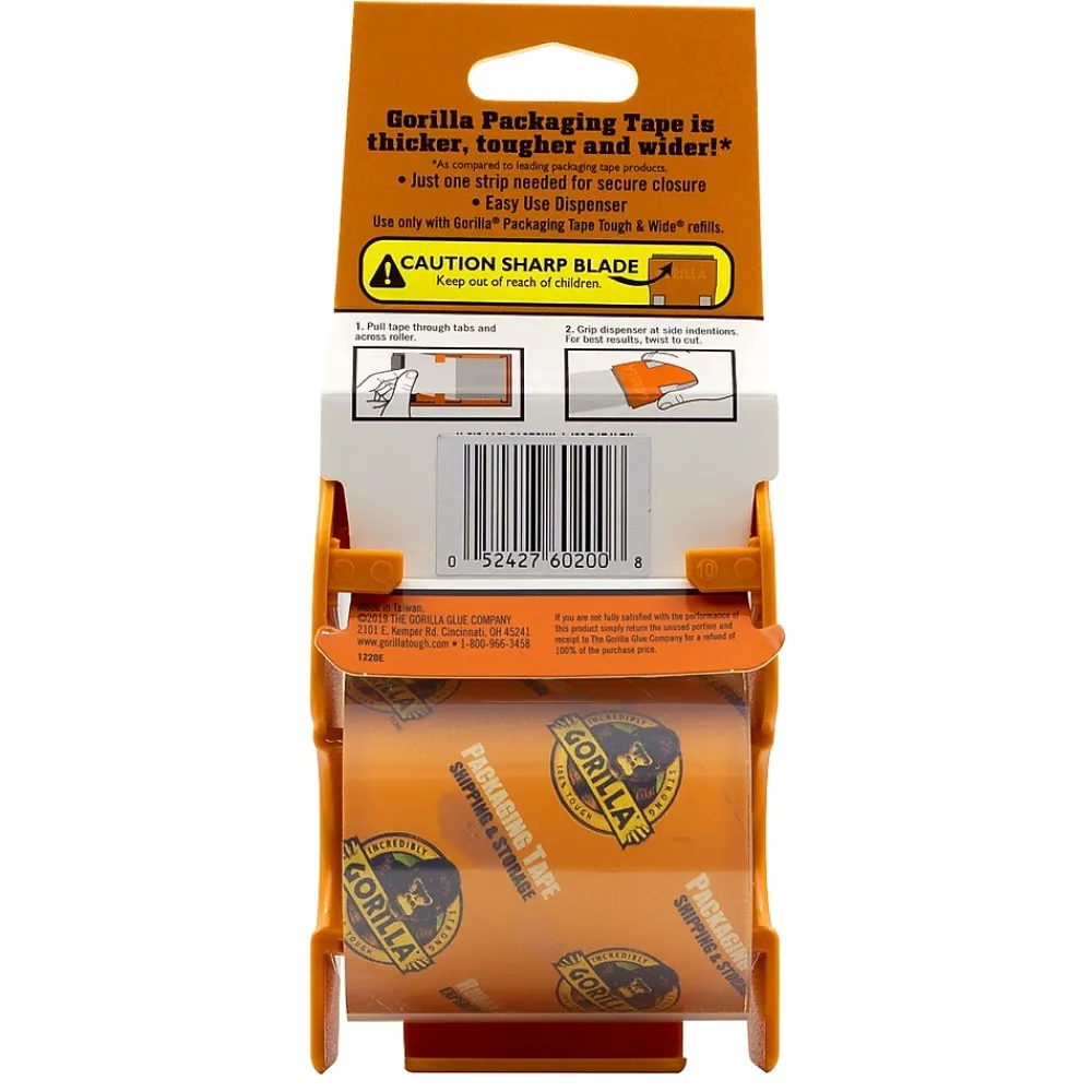 Gorilla Packaging Tape Tough & Wide provides the ultimate solution for moving, shipping and storing. This adhesive tape offers heavy duty strength and durability. The crystal clear packing tape is moisture and temperature resistant, and at nearly 3 inches wide you can seal boxes with just 1 strip. With its wider tape construction, easy-to-grip dispenser, and problem-free tear, this tough tape is simpler to use than other packaging tapes. Plus, its easy-to-refill dispenser lets you get the job done in no time.Use Gorilla #6030402 refill rolls.