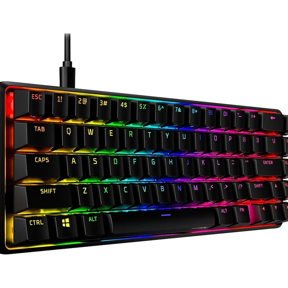 - What’s in the box: mechanical gaming keyboard, detachable USB cable, key cap puller, HyperX ESC key cap, HyperX space bar