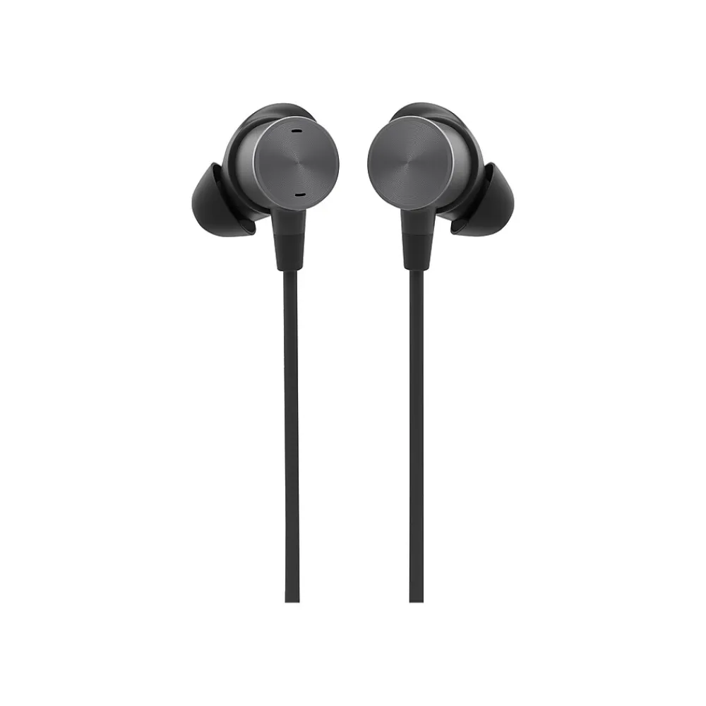 Look and sound your best in video meetings with Zone Wired Earbuds. Certified noise-canceling mic technology clearly captures your every word to make every meeting better while high-quality sound helps you stay in the zone wherever you work. Connect to your smartphone, tablet, or computer with plug-and-play simplicity and reliability. A sleek and simple in-line controller conveniently positioned on the braided cable provides fingertip control plus LED indicators for at-a-glance confirmation of key functions. Business certifications from Microsoft, Google, Zoom, and others ensure that Zone Wired Earbuds work seamlessly, right out of the box. Zone Wired Earbuds look as good on video calls as they sound in your ears. Boomless, contemporary, and beautifully designed, the earbuds convey a sense of professional yet casual elegance. Magnets on the earbud surfaces keep them together when not in use while an included storage pouch is designed to keep cables neat and never tangled.