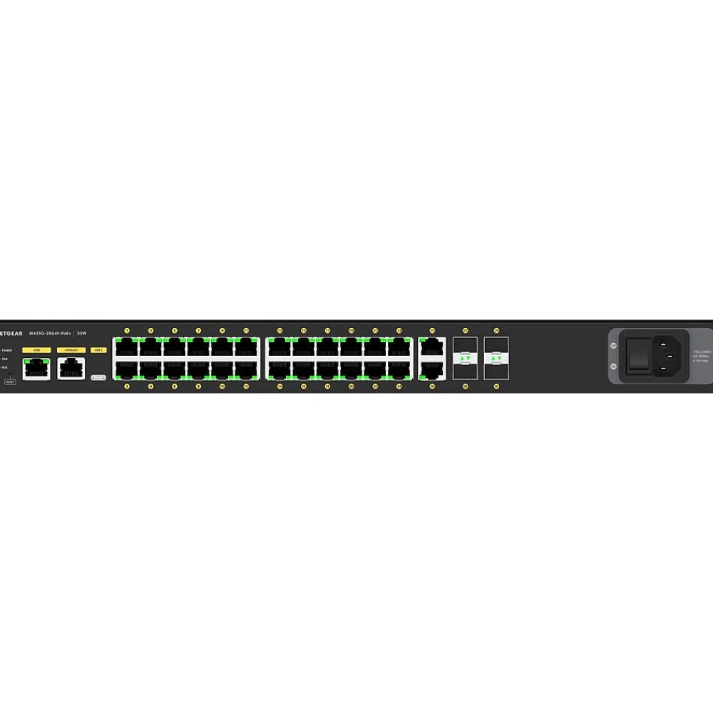 - Layer 3 managed switch with 26x gigabit Ethernet and 4x SFP ports engineered for 1Gb AV over IP