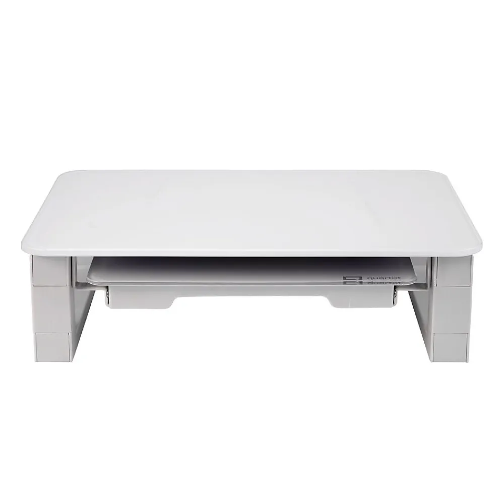Make the most of your desk space. The Quartet desktop glass monitor riser has a dry-erase board that can be hidden away to declutter your desktop. Plus, the adjustable riser legs let you set your monitor at a comfortable eye-level height.