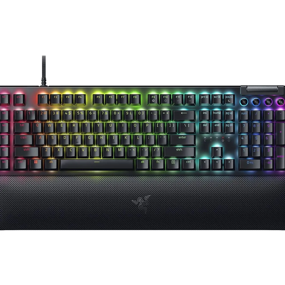 Run your battle station at optimal capacity with the perfect control hub for your PC setup. With multiple macro and media keys, gain access to advanced commands and shortcuts, as you turn up the immersion with the highly evolved Razer BlackWidow V4 mechanical keyboard that goes all out with Razer Chroma RGB.
