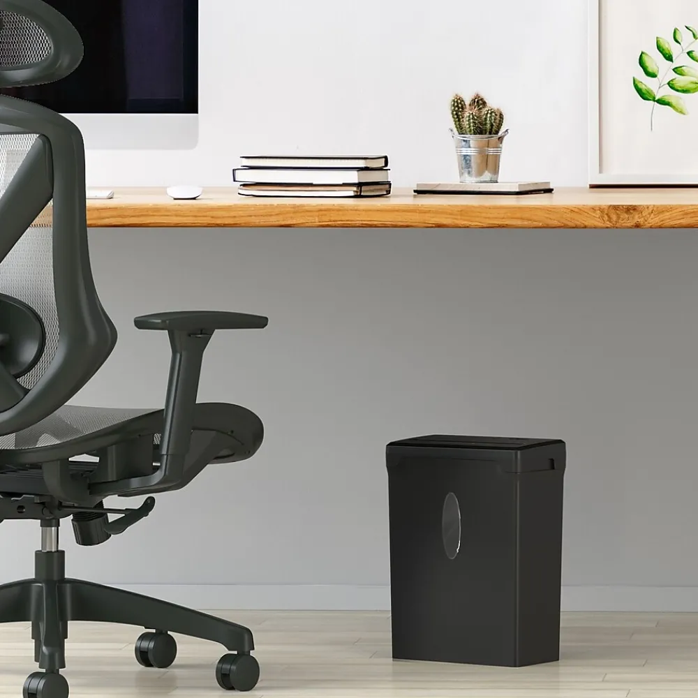 This easy-to-empty Staples Cross-Cut Shredder features powerful blades to keep your disposed documents safe. With a P3 security level rating designed for day-to-day personal paperwork and emails, this unit takes your data down to 5mm x 40mm pieces. The Staples 8-Sheet Cross-Cut Paper Shredder can shred paper, credit cards, and staples for home and office use. Safety temperature indicators and manual reverse loading prevent jams and overheating so you can shred documents without wasting time.