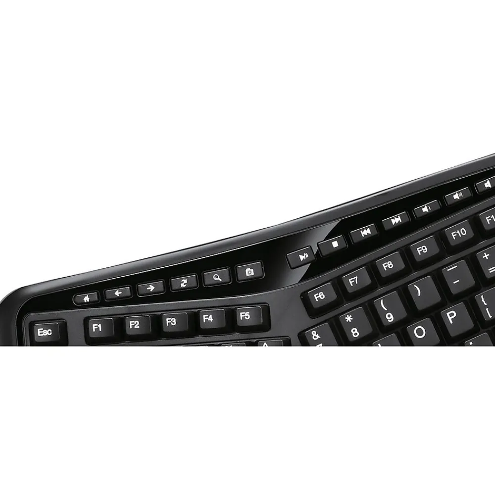 The Adesso Ergonomic Touchpad Keyboard offers you an advanced input device with ergonomic design, and multifunctional features. The design of this keyboard with split key zones and gently sloped encourages natural position of hands, wrists, and forearm in maximum comfort for long use. The keyboard also features an integrated touchpad which can take the place of your mouse, making it easier to control the movement of the cursor on your personal computer.