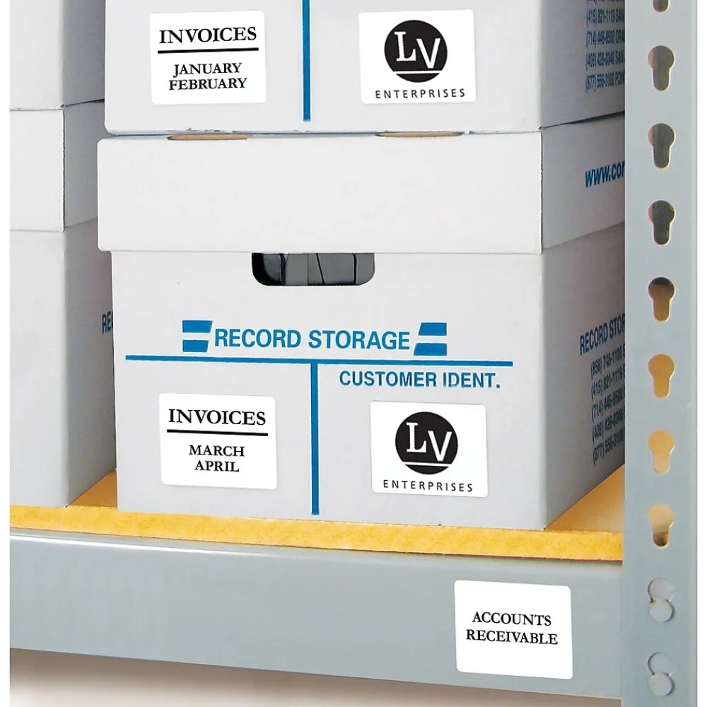 - Multiuse labels make it easy to create identification labels for storage boxes, containers, office or classroom equipment and personal or company property