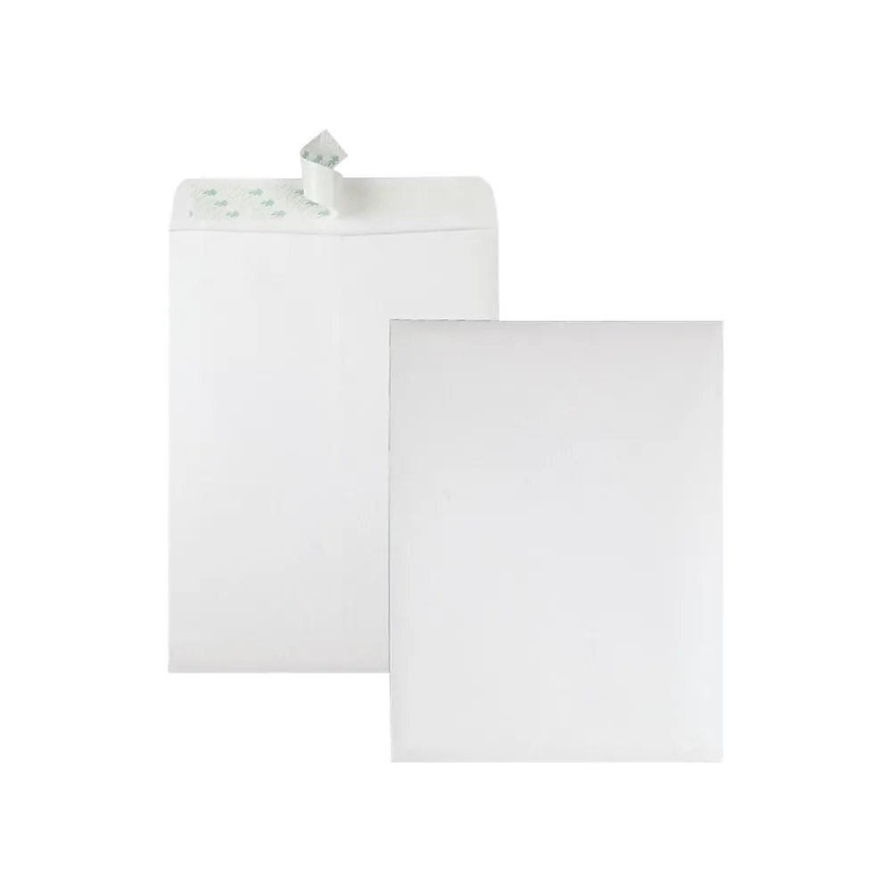Keep statements, invoices, and other important paperwork secure with these white envelopes. Made of durable 28-pound paper, these white wove envelopes protect contents from moisture, ripping, dirt, and other damage. The Redi-Strip seal allows you to easily seal the envelopes without moisture. These Quality Park catalog envelopes open on the long side for easy retrieval and insertion of contents.