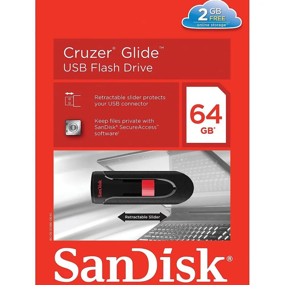 Store, backup, and transfer your important files with the SanDisk SDCZ60-064G-A46 Cruzer Glide 64 GB USB 2.0 Flash Drive. It has a compact, ultra-portable design, so needed files can go with you wherever you need to go. With a huge storage capacity of 64 GB, you have room to store all your photos, music, documents, and even HD videos. The sleek slider design protects the SanDisk Cruzer Glide 64 GB and its contents when you’re on the move. And you can use SanDisk SecureAccess software to keep sensitive files secure.