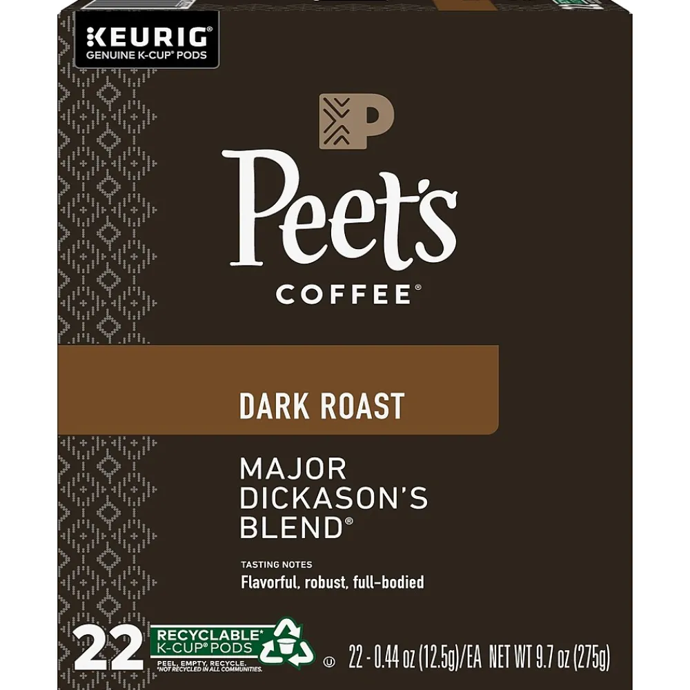 Brew a hot, tasty beverage with these Peet’s Coffee Major Dickason’s Blend coffee pods. The rich, complex flavors give this coffee its unique taste, while the caffeine supplies a rush of energy. These Keurig K-Cup Peet’s Coffee Major Dickason’s Blend coffee pods let you create single servings easily, and with 88 in a pack, you can stock up the whole break room.
