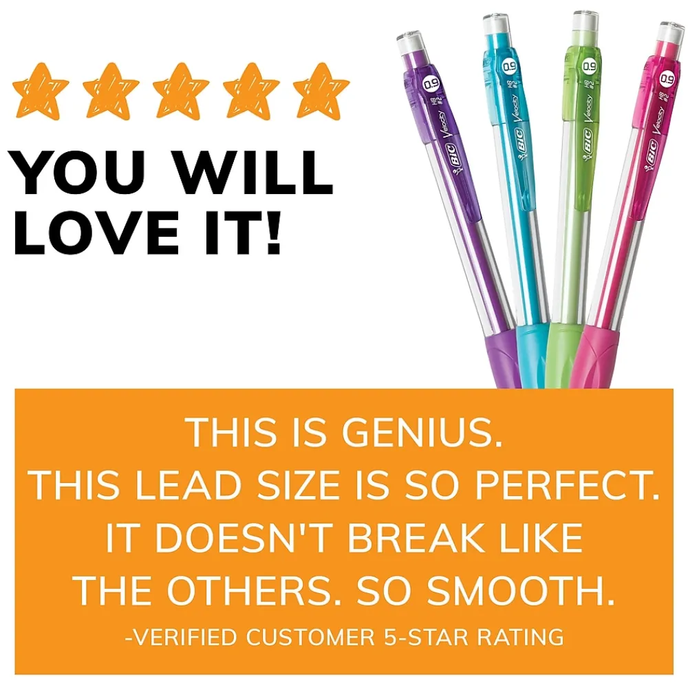 - One 5-count pack of BIC Velocity Strong Lead Mechanical Pencils With Erasers