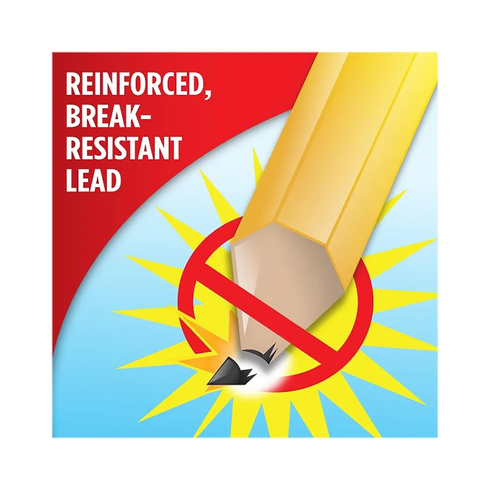 Get more out of your pencil with the Paper Mate EverStrong No. 2 pencil. This woodcase pencil features reinforced, break-resistant lead, so it needs less sharpening and last longer. Also features a 100% latex-free eraser.