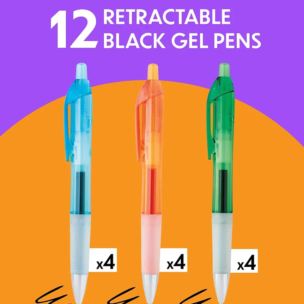 - Convenient retractable gel pens with a comfortable grip and plastic clip — ideal gel pens set for office or school supplies