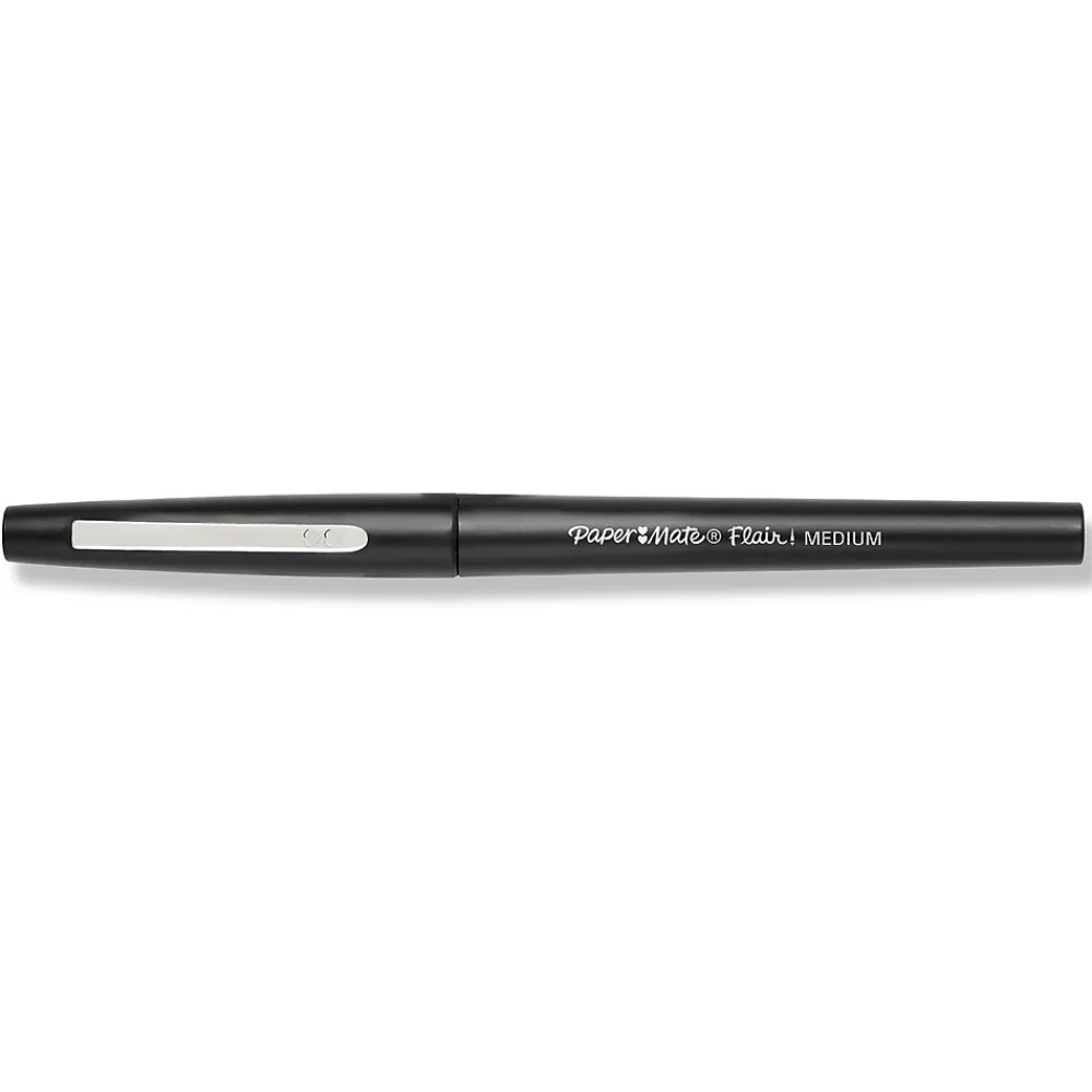 Pens|Paper Mate Flair Felt Pens, Medium Point, 0.7mm, Black Ink, Dozen (8430152)