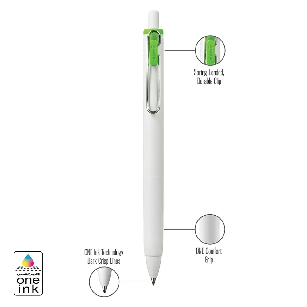 Experience the next stage of ink technology innovation with uniball one retractable gel pens from featuring a 0.7mm medium point. The revolutionary gel ink is specially formulated with large pigments that do not absorb into paper. This results in writing and drawing that is darker, brighter, and ultra-vivid. Quick-drying gel pens resist smudging, smearing, and bleeding, making them perfect for crisp and easy-to-read notes and assignments. A 0.7mm medium tip strikes the perfect balance between bold and detailed lines. The sleek white barrel with integrated anti-slip grip makes this pen a stylish writing tool. Additionally, the functional wire clip indicates the gel ink color, as well as opens wide for easy attachment to papers, notebooks, or folders. uniball one gel ink delivers superior writing performance whether at school, at home, or at work.