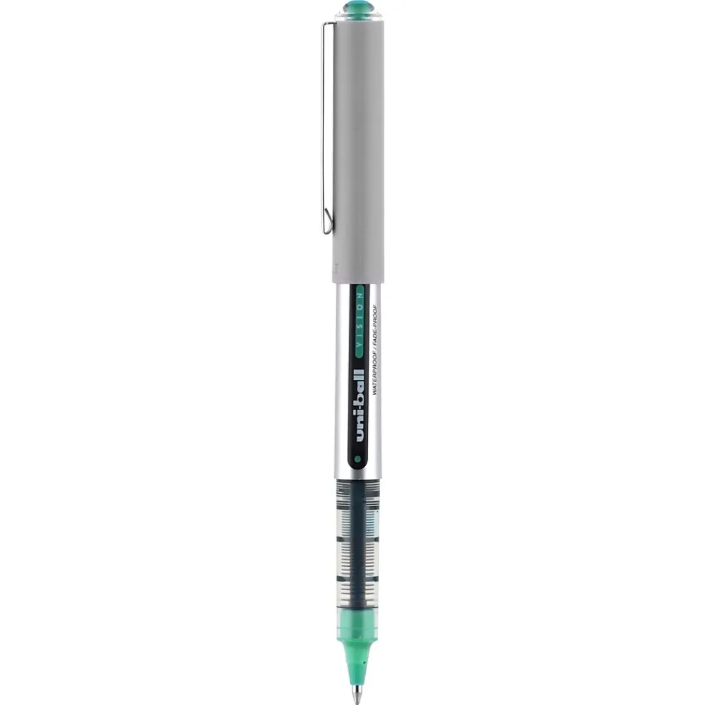 With its evergreen-colored ink and soft grip, the uni-ball Vision Stick Rollerball Pen will become your go-to writing utensil. Each pen set includes one dozen pens with durable stainless steel tips, ink windows and pocket clips.
