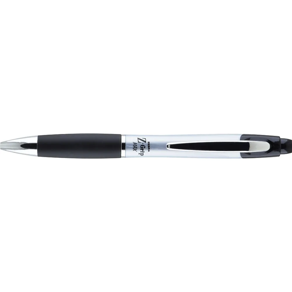 Maximize your writing experience with the Z-Grip Max retractable ballpoint pen. This retractable ballpoint pen features a wide comfort barrel with colored grip and colored push button to identify ink color at a glance.