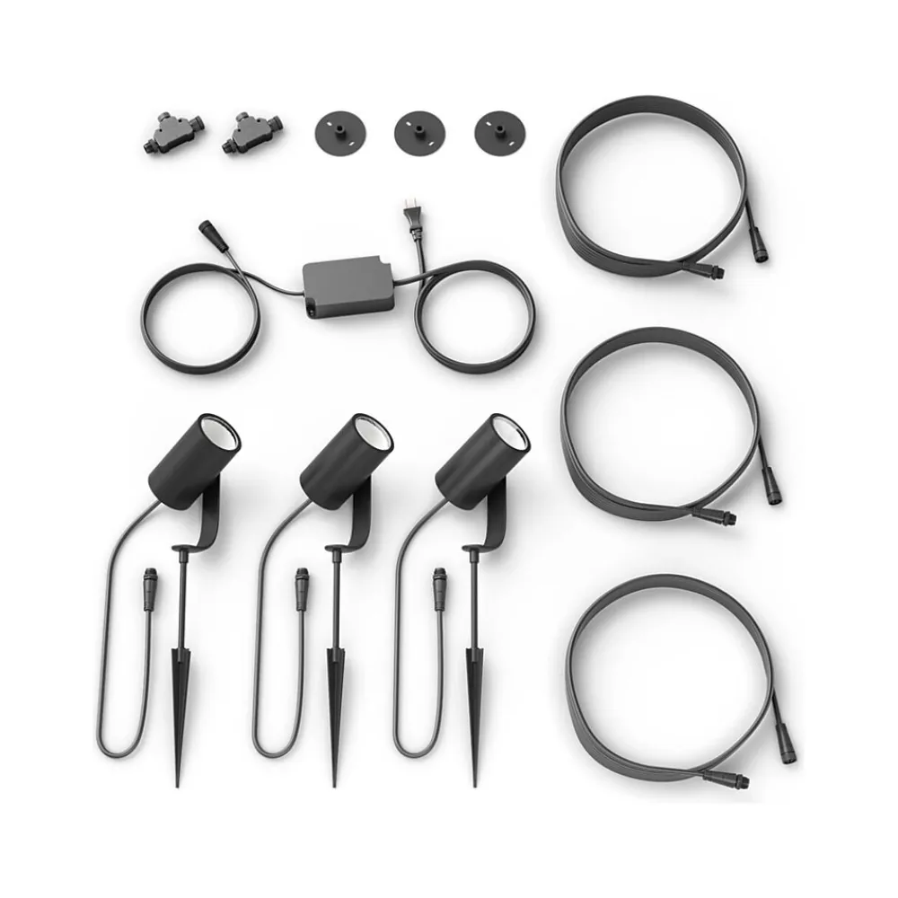 This Philips Hue Lily set of three spotlights lets you highlight your favorite outdoor features, create interesting shadows, and more. Simply connect the smart outdoor spotlights into any standard wall socket using the included low-voltage power supply to get millions of shades of white or color light in your yard.