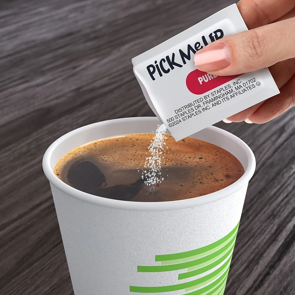 Sweeten the office environment with sugar that your colleagues can take with them. Give everybody the flexibility to enjoy their coffee anywhere they want with this box of 2000 Pick Me Up Provisions sugar packets. Each paper pouch equals one serving ready to be poured into a cup of coffee to give it that extra boost. With so many packets, you can place them in multiple breakrooms, coffee stations, waiting rooms or elsewhere around the office. You can even keep a few in your desk drawer. 100% pure cane sugar will make everyone’s mid-morning or late- afternoon coffee break a little bit better. Give clients, colleagues and other guests a way to make their beverages just the way they like them.
