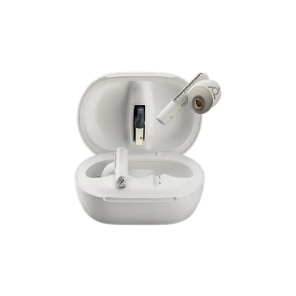 And the touchscreen charge case (Voyager Free 60+ UC) doesn’t just go the distance — it gives you control at your fingertips, so you can connect instantly with your team, playlists, podcasts, and even inflight entertainment. Your IT department will also approve because they are certified to work with the latest meeting platforms including Microsoft Teams and Zoom, and they can be centrally managed from anywhere in the world.