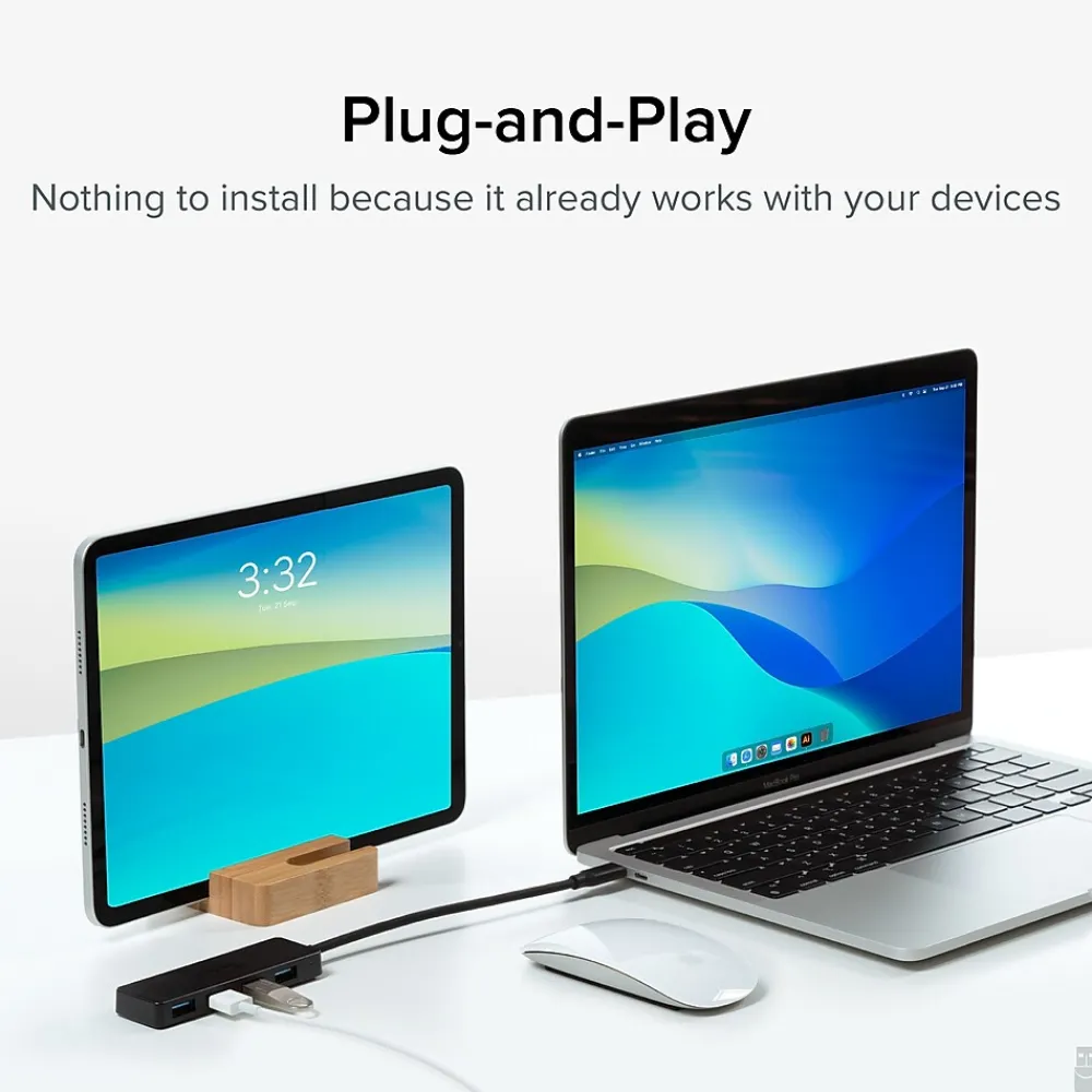 - 4x USB – Compact, lightweight, and travel-ready, the USB C hub adds 4x USB 3.0 ports through a single USB-C port. Great as a USB hub for laptop or desktop to connect a USB flash drive, keyboard, mouse, or any other legacy USB devices