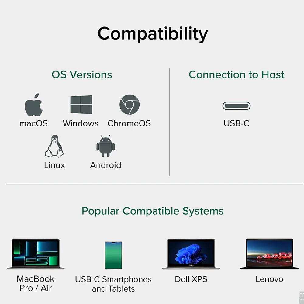 - Compatibility – Compatible with Windows, macOS, ChromeOS, and Linux, USB-C hub will pretty much work with anything with a USB-C, Thunderbolt, or USB4 port