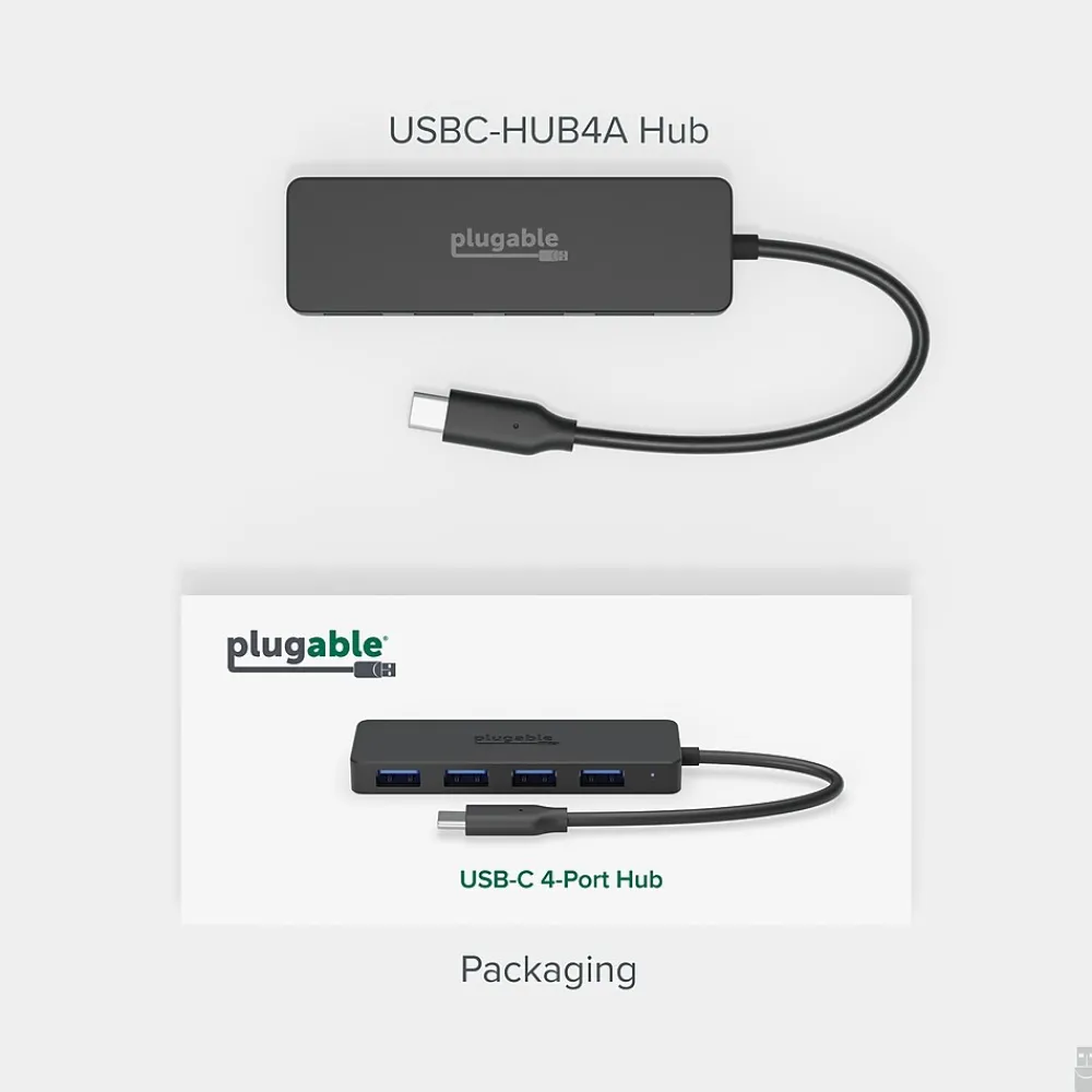 Plugable USB C to USB Adapter Hub, 4 Port USB 3.0 Hub, USB Splitter for Laptop, Compatible with Windows, MacBook Pro/Air, iPad Pro, Surface Pro, Chromebook, Linux, Android, Charging Not Supported
