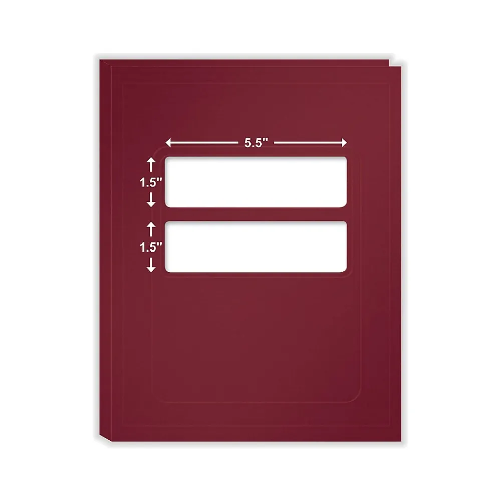 - Double-window presentation folder in burgundy color; 50 folders per pack