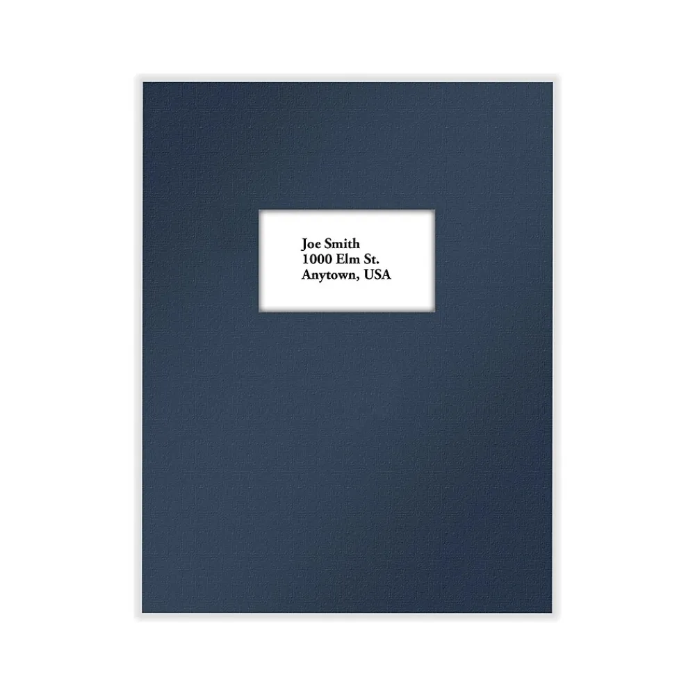 - Single-window presentation folder in navy blue; 50 folders per pack