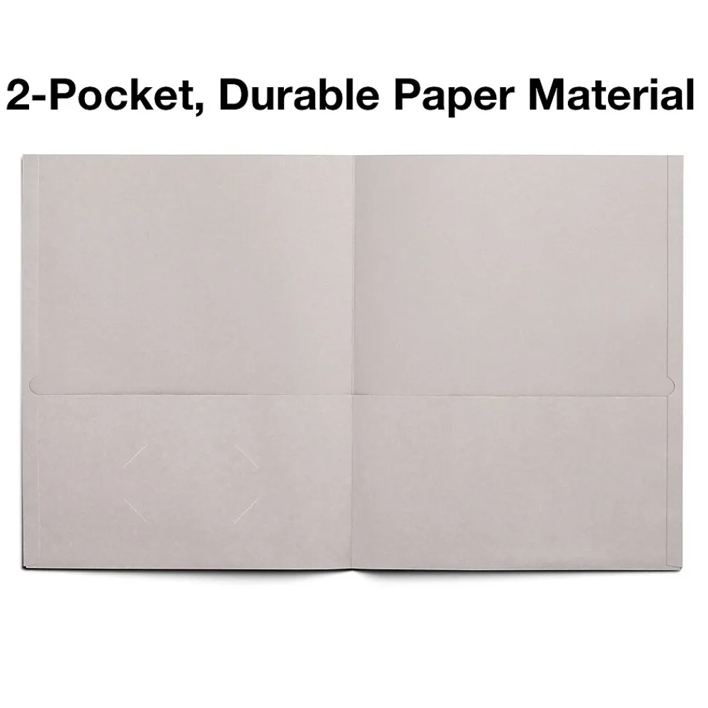 - Presentation folder in gray color made of sturdy paper stock resists tearing