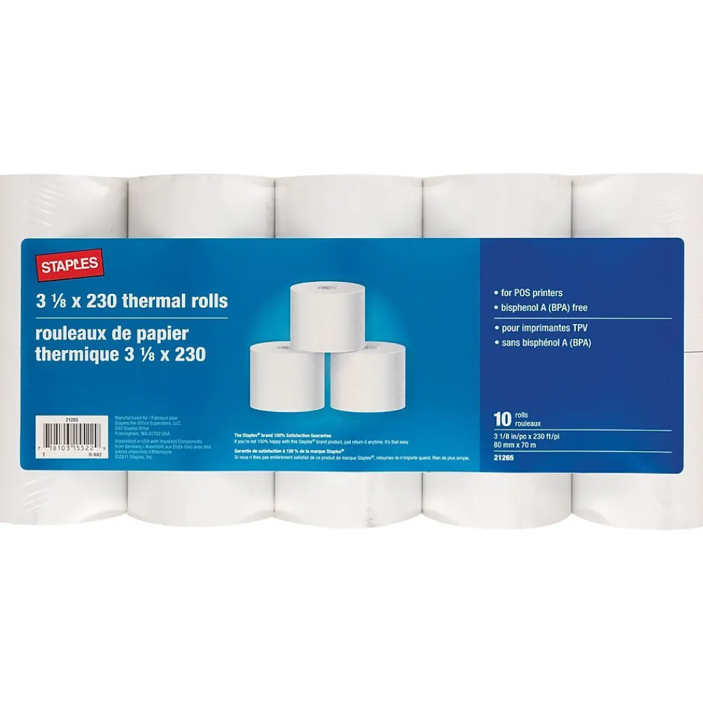 Get high-performance printing with these thermal BPA-free POS rolls. Each one uses thermal printing technology to provide dark, crisp text and images without ink, while the end-of-roll indicator lets you know when it’s time to replace it. These thermal BPA-free POS rolls come in a pack of 10 and are 230 feet long to provide hundreds of receipts.